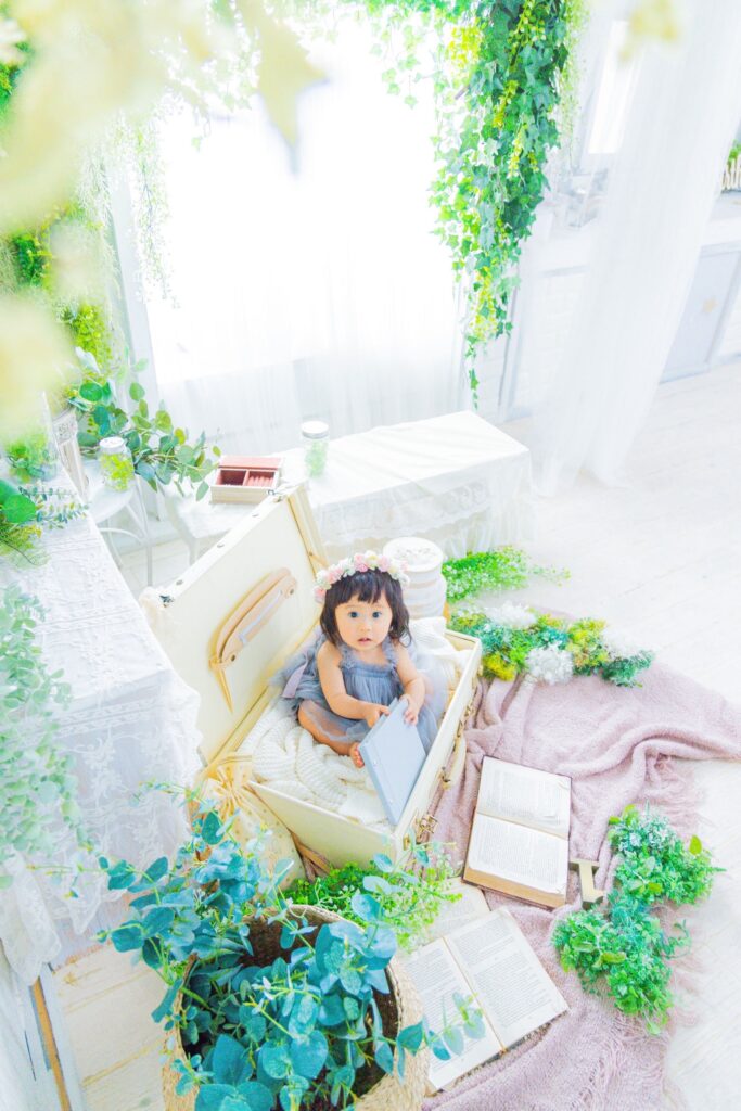 お子様の月齢年齢に合わせて背景セット変えながら撮影しています。