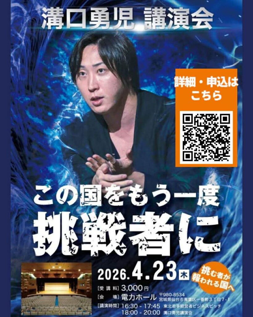 2026年4月23日(木)、仙台・電力ホールにて 「REAL VALUE CEO 溝口勇児 仙台講演会」を開催いたします。